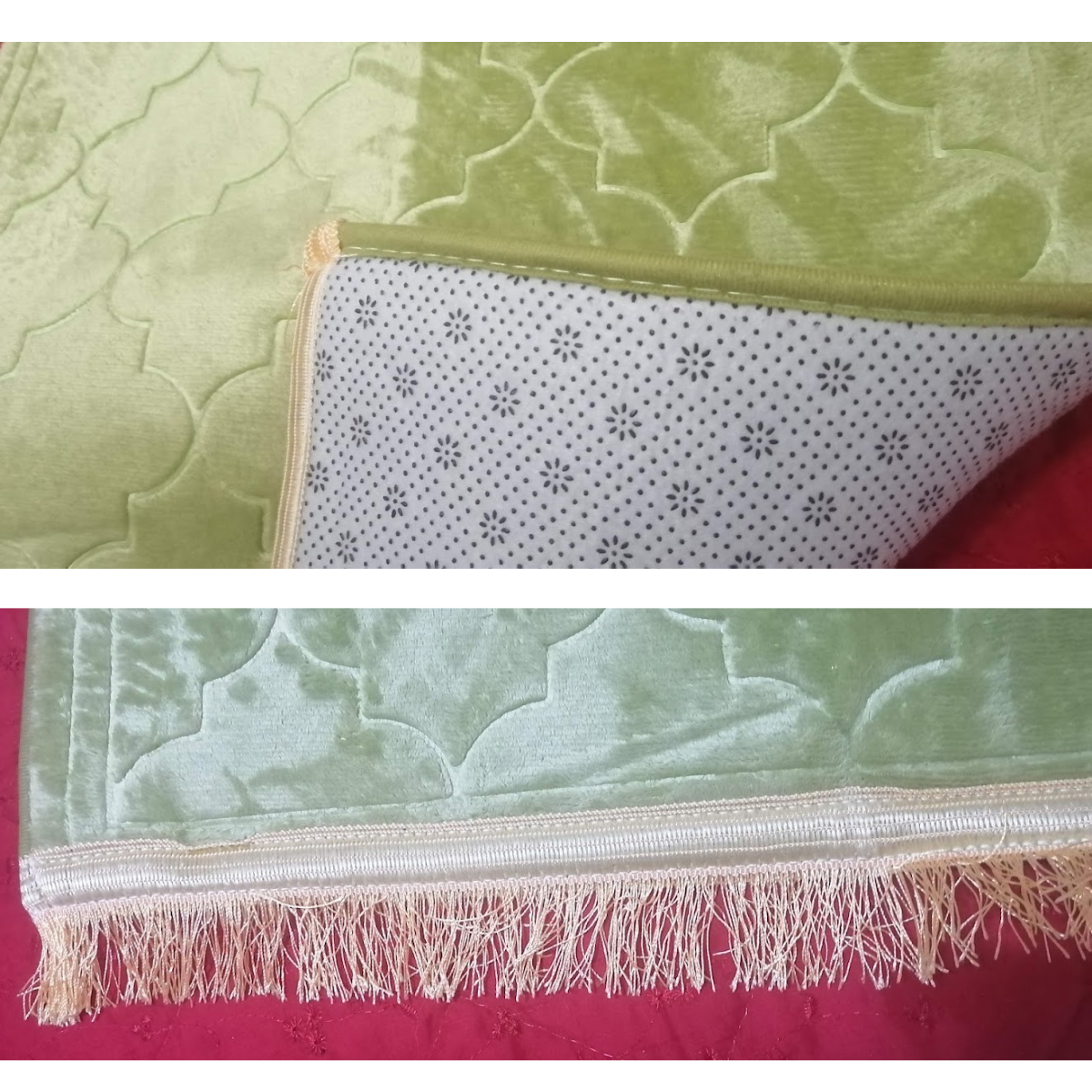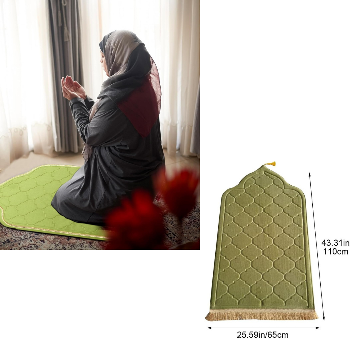 Esta alfombra ofrece una superficie de franela suave y confortable, ideal para realizar tus rezos con mayor comodidad. Su acolchado interno de esponja brinda soporte adicional para rodillas y pies, mientras que la base antideslizante mantiene la alfombra firme en su lugar durante la oración. Su tono verde aporta serenidad y armonía, haciendo de cada momento de rezo una experiencia más tranquila y acogedora.