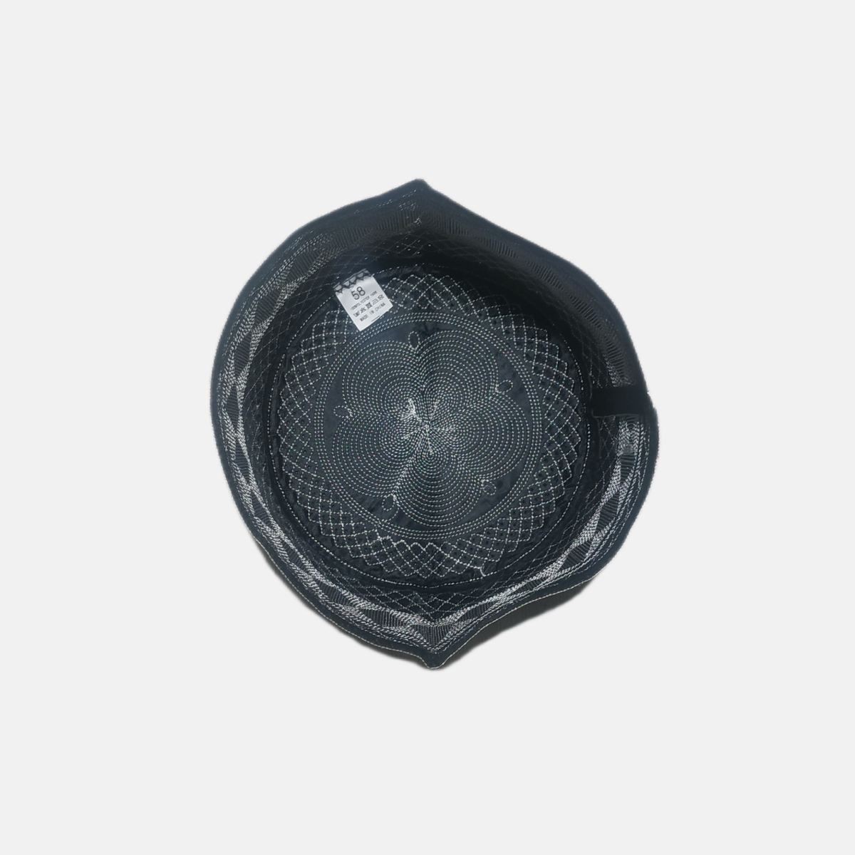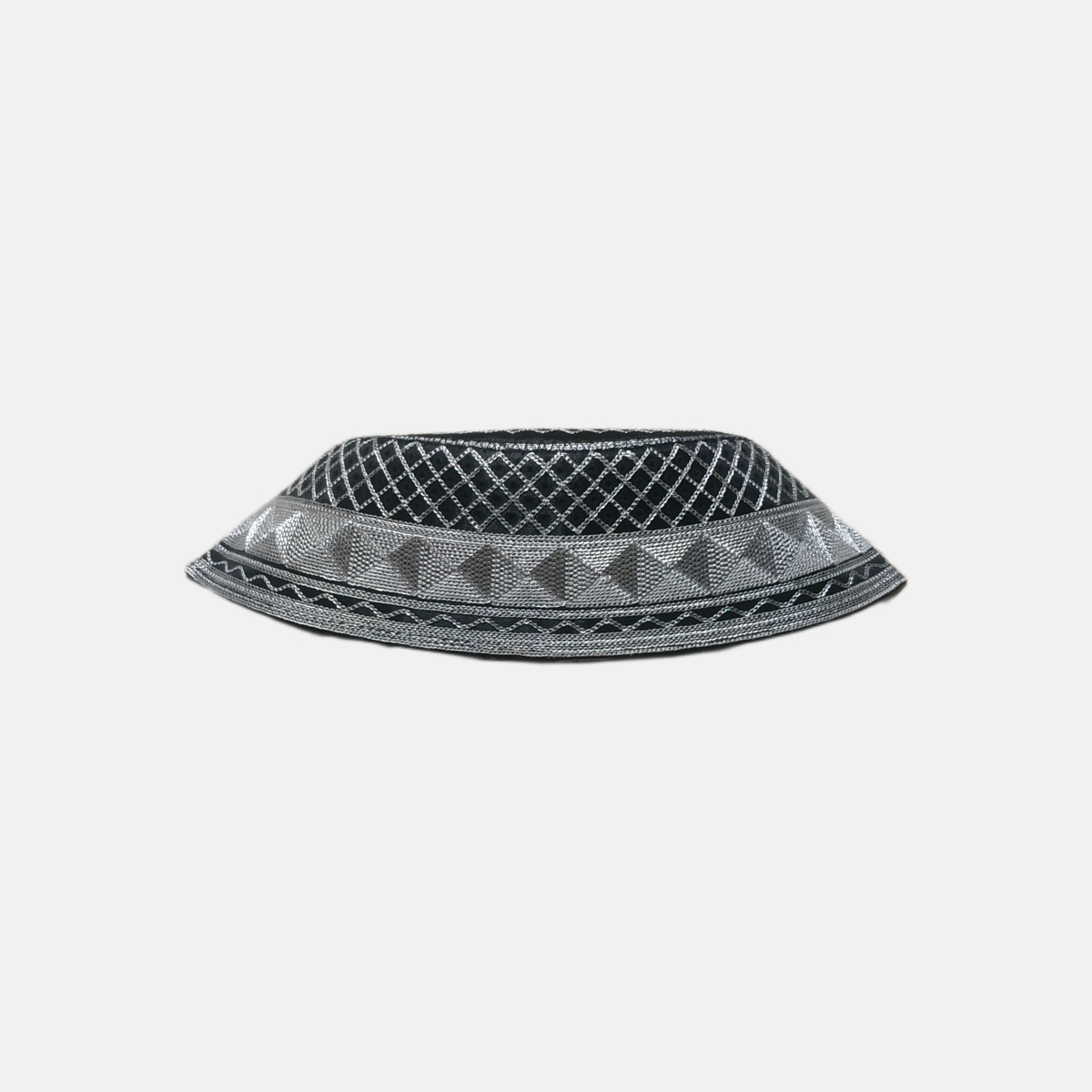 El Gorro Kufi árabe artesanal negro blanco es una pieza tradicional que destaca por su contraste elegante y sobrio. El color negro de la base se complementa perfectamente con el bordado blanco, creando un diseño armonioso inspirado en patrones clásicos de la cultura árabe e islámica.