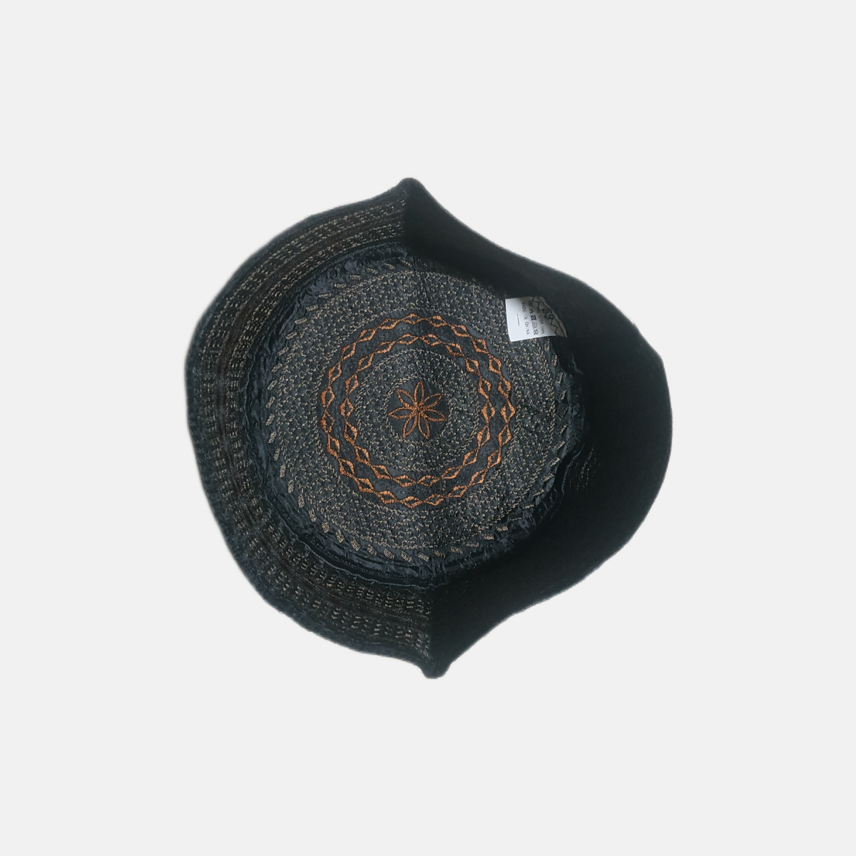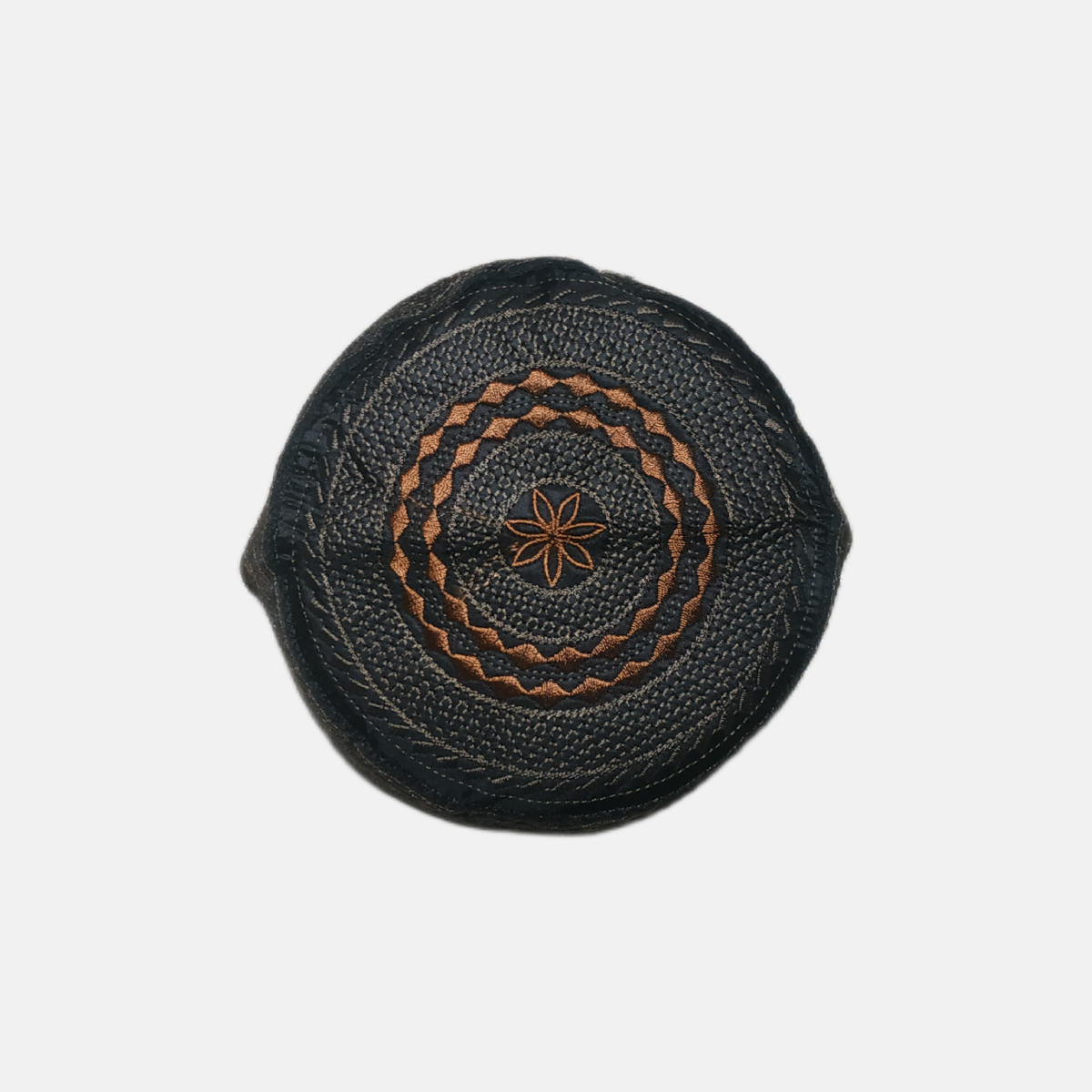 Gorro Kufi árabe artesanal negro naranja